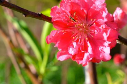 Peach blossom honey bee