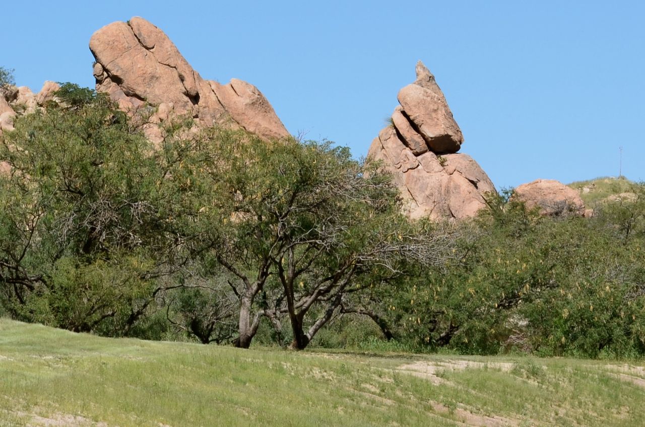 I left Fort Stockton before sun-up and Houston the day before after an unanticipated delay caused a change in direction – don’t ask. The ride today was magisterial. It felt like the trip had finally begun five-hundred and four-miles from home. A few hours down the road I saw the Chiricahua Mountains for the first time since the Christmas Holidays of 1981 … Margaret & I were driving to Bisbee, Arizona to celebrate finishing college. Margaret chose Bisbee like she did all our destinations. Research! Arriving in Bisbee and to our surprise, we found an abandoned copper mining town taken-over by hippie squatters. It was like a movie. Where would we stay? Now there’s a tale but sorry, what happened in Bisbee stays in Bisbee. The hike in the Chiricahua Mountains Park made the trip. Such a magical place. The photo above is actually from the Apache Rest Area just outside Van Horn in West Texas. In my travels West I always stop there, eat a brown bag lunch, water the cactus, and shoot the mountain. This time it was still morning. I think morning is best for this mountain – a gentle introduction to the stone monuments ahead in Arizona. The shot below is a Chiricahua upthrust. Neither shots do justice to the photos we took with our old Pentax 35mm film camera. That amazing relic stares at me still from the bookshelf. Where are those photos? The Chiricahua Mountains contain the most bizarre formations we ever saw in our travels together. The shot here only hints at the towering forest of stone labyrinths inside the park.