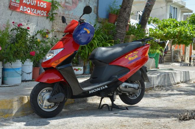 A 15 minute ferry ride from Cancun takes you to Isla Mujeres. Less than four and a half miles long and perfect for motorcycling. But everyone on Isla rides a scooter and after a few days we can say it’s the ideal ride on island paradiso. Scooters are an extension of the local persona the way cars are in Houston but the skills here are unsurpassed. You’ll see whole families, dogs, and passengers balancing everything from furniture to a stack of two-by-fours on their shoulders while riding. No matter how fast you go they will pass you on the left or the right. And an eerie quiet is all you’ll hear from the multitude of scooters in motion. The engines are nearly silent, no one ever honks, and we’ve yet to see a collision. It’s reminiscent of the Terminal floor at Grand Central Station. There’s no accounting for it.